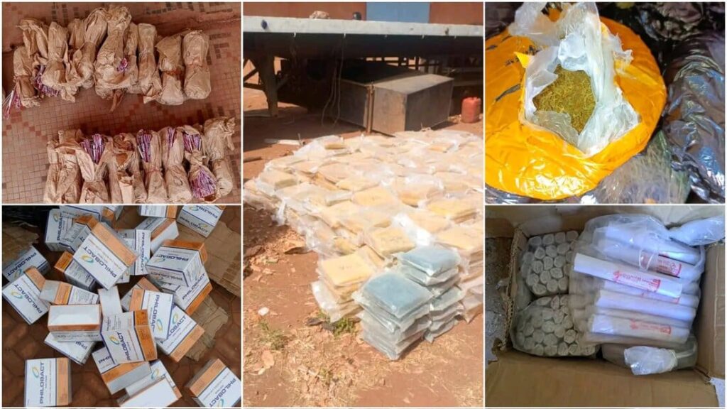 Le bilan inclut également 118 tonnes de médicaments prohibés, d’une valeur de 1 250 145 211 f CFA, portant le total des saisies liées aux stupéfiants à plus de 2,3 milliards f CFA. Ces produits sont considérés comme des sources de financement cruciales pour les groupes armés opérant dans la région.