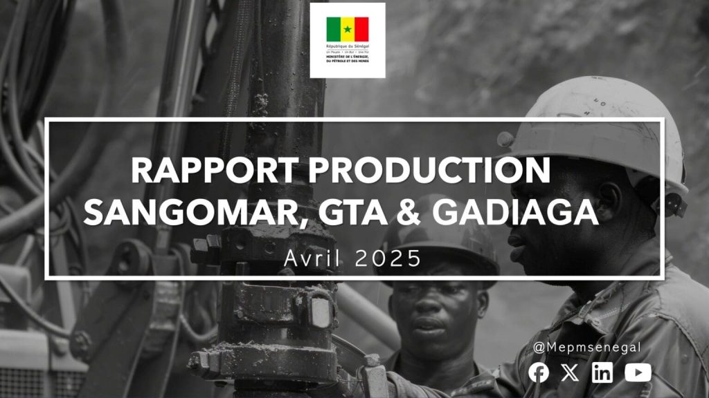 La dynamique pétro-gazière sénégalaise s’est confirmée en avril 2025, selon le rapport mensuel du ministère de l’Énergie. Trois projets stratégiques Sangomar, Grand Tortue Ahmeyim (GTA) et Gadiaga ont enregistré des performances notables, illustrant l’ancrage du pays dans le paysage énergétique régional.