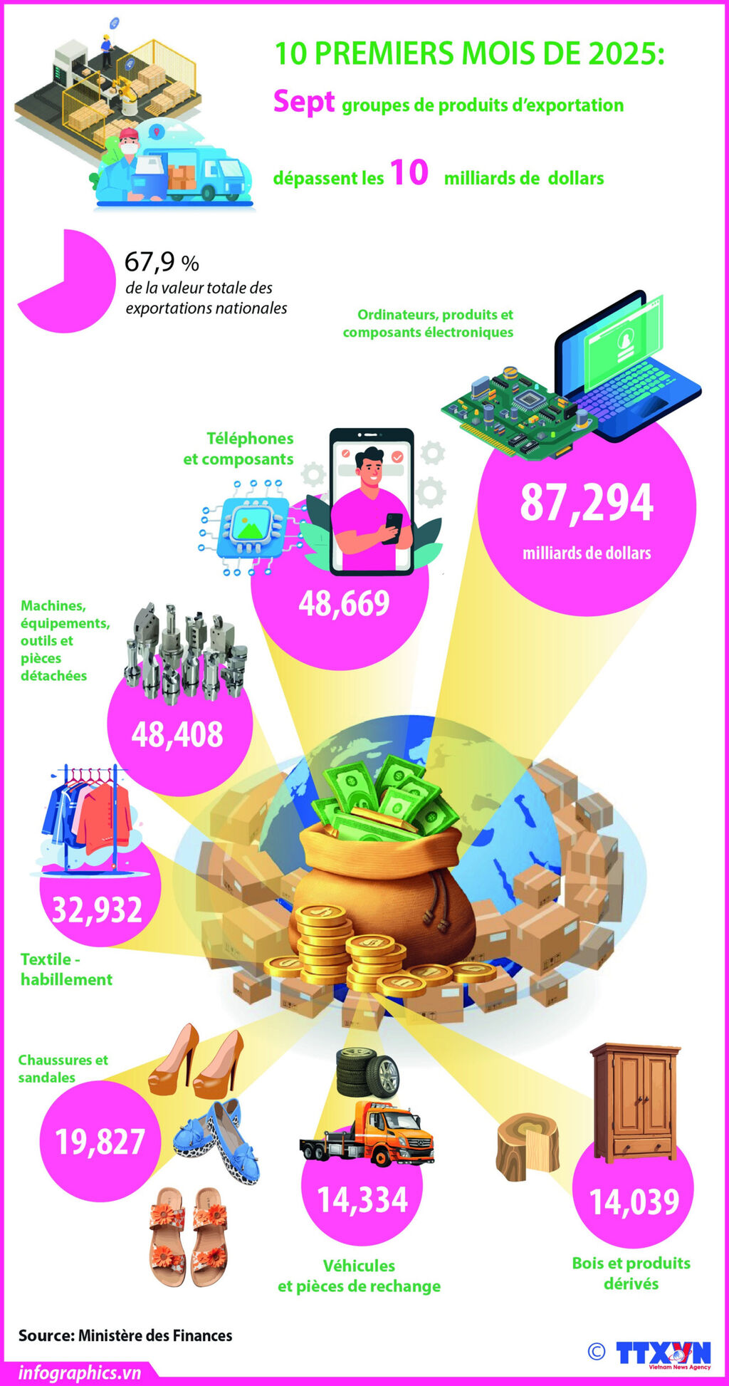 Selon les statistiques du ministère des Finances, sur les dix premiers mois de l’année, le volume total des échanges commerciaux du pays a atteint 762,44 milliards de dollars, marquant une hausse de 17,4% en glissement annuel et dégageant un excédent commercial de 19,56 milliards de dollars.