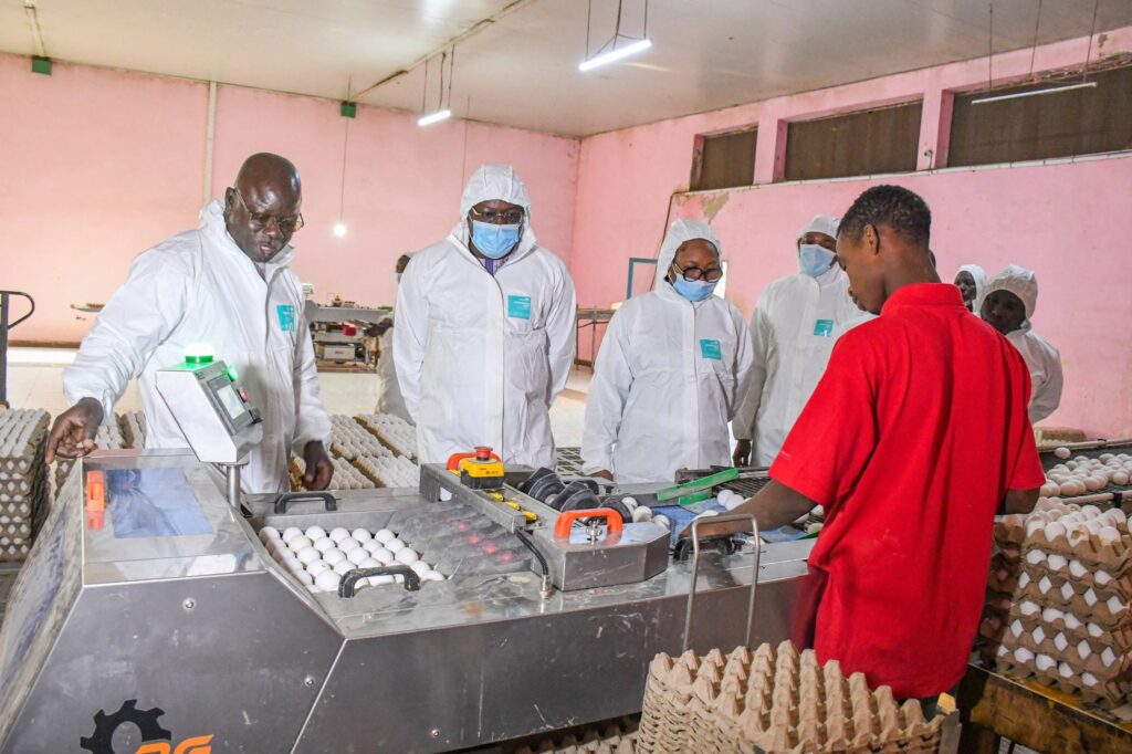 À Nambé, les ministres se sont rendus au complexe avicole MOABLAOU SA, dont le coût total s’élève à 4,5 milliards de F CFA. Le projet a bénéficié d’un appui de 1,3 milliard de F CFA du FBDES, incluant 300 millions sous forme de participation de 10 % dans le capital. Ce financement a permis de moderniser les installations et d’augmenter la production de poulets et d’œufs, avec notamment la construction d’un bâtiment pour l’élevage de poussins et la rénovation d’un bâtiment pour les pondeuses.