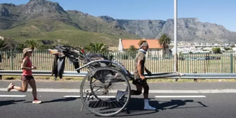 Le Japonais Yuji "Gump" Suzuki, âgé de 34 ans, a atteint son objectif dimanche 26 janvier en arrivant au Cap, après avoir parcouru plus de 6.000 km à pied, tirant