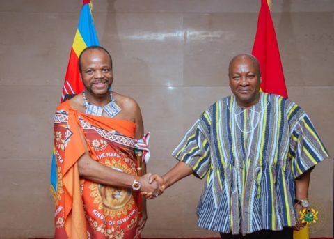 Le roi Mswati III d’Eswatini a entamé une visite officielle au Ghana, accueillie avec faste à Accra ce jeudi par le président John Dramani Mahama et la vice-présidente Naana Jane