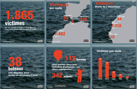Entre le 1er janvier et le 31 mai 2025, 1 865 migrants sont morts ou ont disparu en tentant de rejoindre l’Europe par la route euro-africaine, selon un rapport du