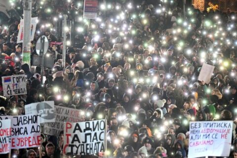Des milliers de personnes se sont rassemblées vendredi 17 janvier devant la Télévision nationale serbe (RTS) à Belgrade pour demander plus d’impartialité dans ses reportages, tout en rendant hommage aux