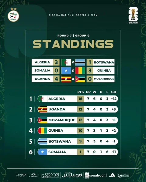 L’Algérie a fait un grand pas vers la Coupe du monde 2026 en s’imposant face au Botswana (3-1), profitant dans le même temps de la lourde défaite du Mozambique