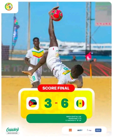 Le Sénégal a remporté une victoire impressionnante de 6-3 contre le Mozambique, validant ainsi sa qualification pour les demi-finales de la Beach Soccer Africa Cup of Nations (BSAFCON) 2024. Ce