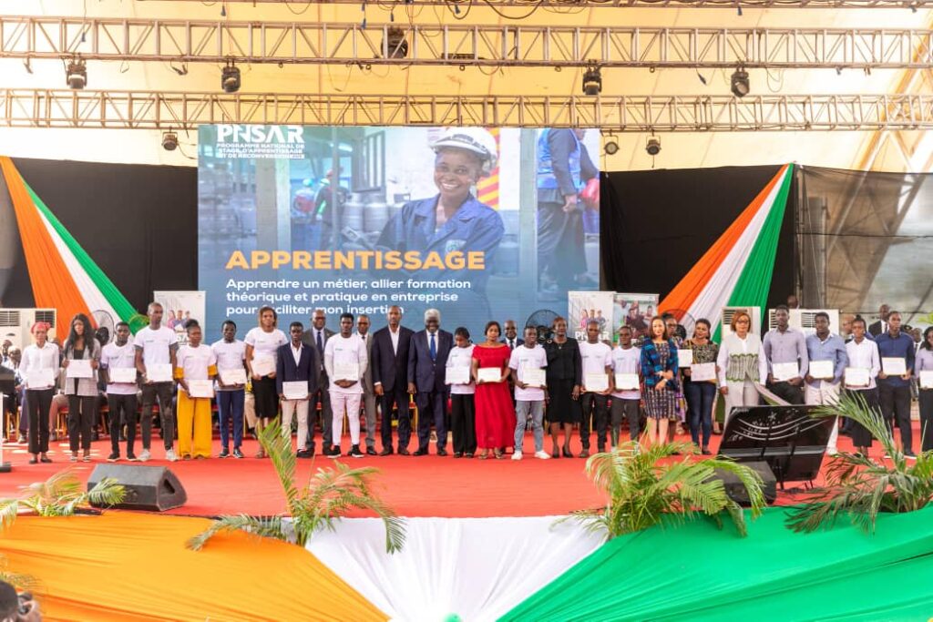 Le PNSAR est destiné aux jeunes de 16 à 40 ans et comprend plusieurs sous-programmes : stage de qualification, stage de pré-emploi, stage pour validation de diplôme, apprentissage, ainsi que des formations de reconversion et de requalification. En 2023-2024, le programme a permis à 116 757 jeunes de bénéficier de formations et de stages, pour un budget de 25,4 milliards de FCFA, avec un taux de réalisation de 101 %. En 2025, ce programme visera à atteindre 142 000 jeunes sur l’ensemble du territoire.