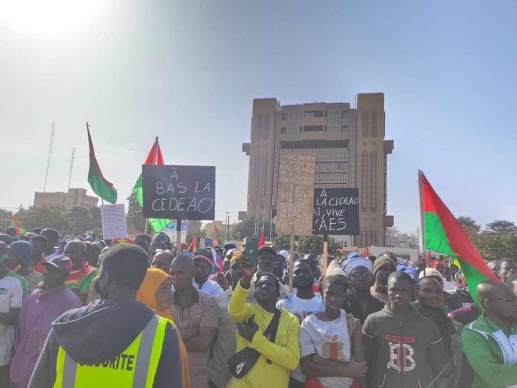 Les slogans scandés par les manifestants ont exprimé un rejet ferme de l’organisation ouest-africaine, avec des phrases comme « A bas la Cédéao pourrie, vive l’AES » et « Nous voulons la paix, vive l’AES ». Ils ont aussi exprimé leur soutien aux présidents des trois pays : Ibrahim Traoré (Burkina Faso), Assimi Goïta (Mali) et Abdourahamane Tiani (Niger).