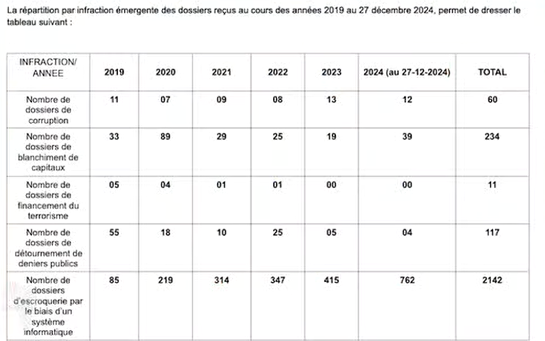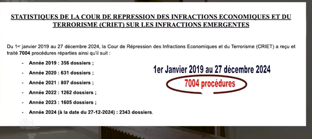 La CRIET, comme il est connue de tous, est créée pour traiter des affaires liées à des enjeux économiques et sécuritaires majeurs, a traité, à en croire le ministre, entre janvier 2019 et décembre 2024, 7 004 procédures. Parmi celles-ci, on compte 2 142 affaires de cybercriminalité, 680 concernant le terrorisme, 157 liées au trafic de drogue, 117 pour détournement de fonds publics, 60 pour corruption, et 234 pour blanchiment d’argent.