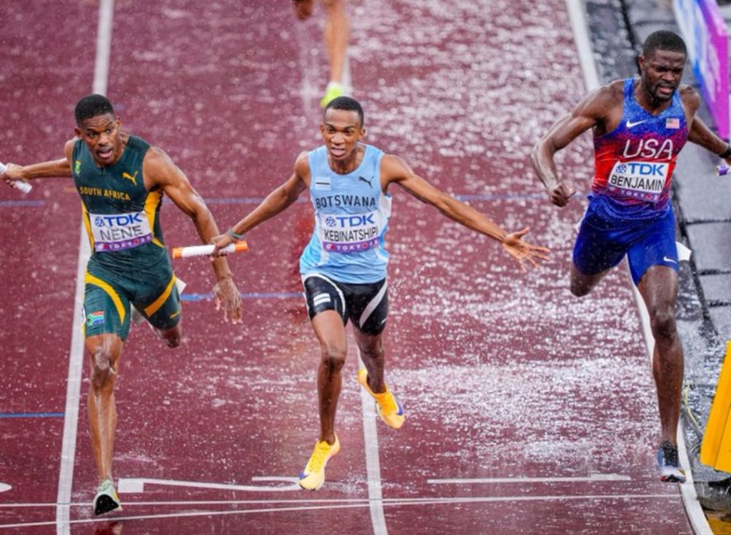 Trois jours plus tard, Kebinatshipi a de nouveau brillé en conduisant le relais masculin composé de Letsile Tebogo, Bayapo Ndori et Anthony Pesela. Sous une pluie battante, les Botswanais ont dominé les États-Unis, champions des neuf dernières éditions, en 2:57.76, un nouveau record d’Afrique.