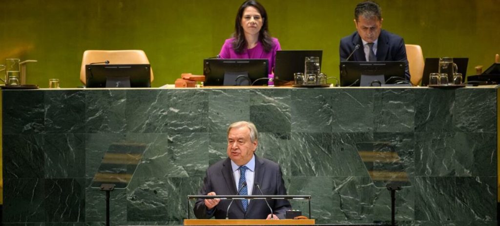 Il a invité les États à faire « cinq choix cruciaux » : défendre le droit international, protéger les droits humains, agir pour la justice climatique, orienter la technologie vers le bien commun et renforcer l’ONU.