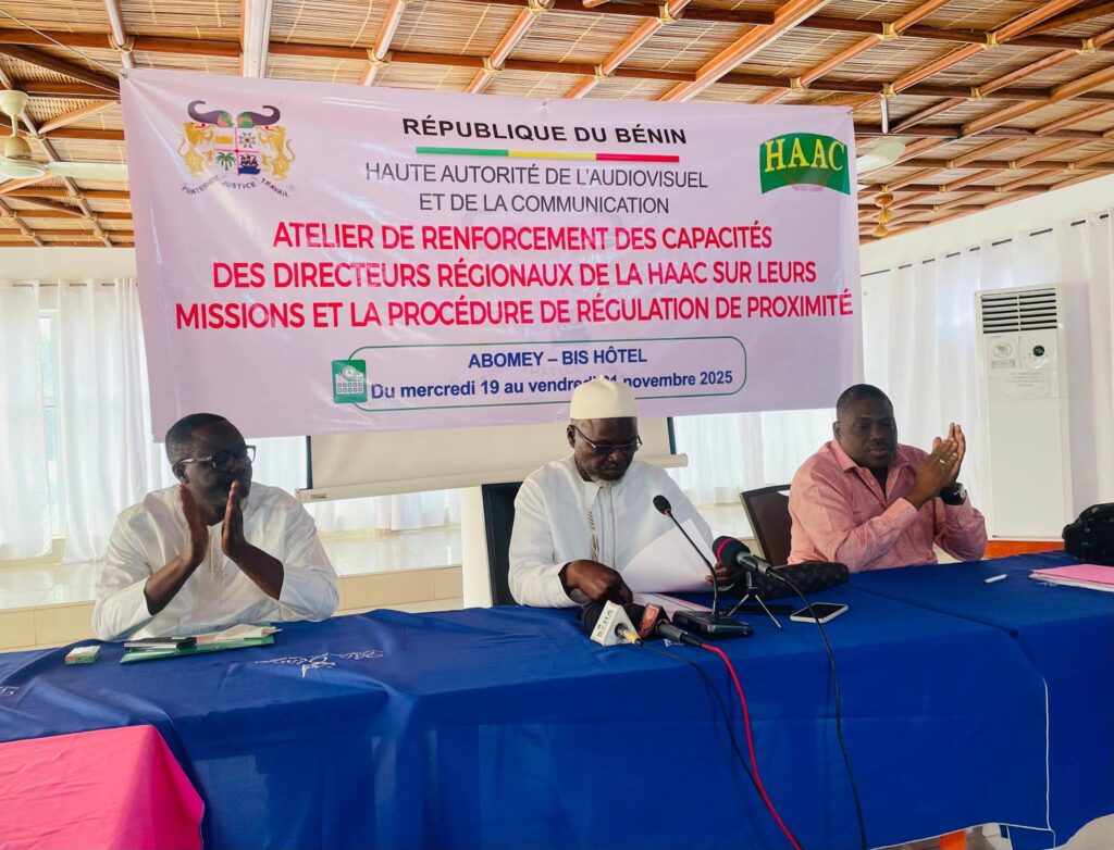 La Haute Autorité de l’Audiovisuel et de la Communication a ouvert ce mercredi 19 novembre 2025, au Bis Hôtel d’Abomey, un atelier destiné à ses directeurs régionaux. L’objectif est de consolider leurs connaissances sur leurs missions et de renforcer la mise en œuvre de la régulation de proximité.