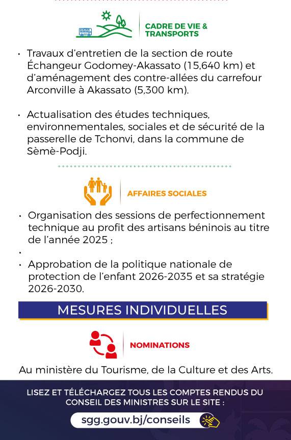 Le Conseil des Ministres s’est réuni mercredi, le 19 novembre 2025, sous la présidence de Monsieur Patrice TALON, Président de la République, Chef de l’État, Chef du Gouvernement. En voici les grandes décisions :