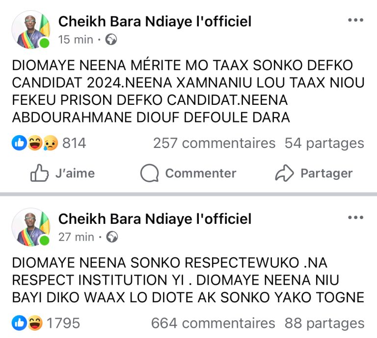 Au Sénégal, au cours d’une rencontre entre le président de la République, Bassirou Diomaye Faye, et les dirigeants du Pastef, le député Cheikh Bara Ndiaye a dévoilé des échanges pour le moins surprenants. Selon Cheikh Bara Ndiaye, le président Faye est resté inflexible et a critiqué le leader du parti, Ousmane Sonko, pour ce qu’il estime être un manque de respect envers lui et les institutions : « Sonko ne me respecte pas et ne respecte pas les institutions, et il doit les respecter. Il faut que les gens arrêtent de dire que j’ai eu tort sur Sonko », aurait-il déclaré.