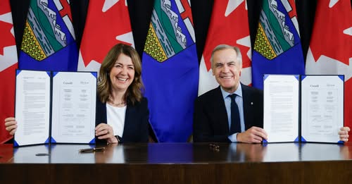 Hier, jeudi 27 novembre 2025, le premier ministre canadien Mark Carney et la première ministre albertaine Danielle Smith ont signé un protocole d’entente à Calgary pour faciliter la construction d’un oléoduc reliant l’Alberta à la Colombie-Britannique, financé par le secteur privé. Cette signature intervient quelques heures avant la démission de l’ex-ministre de l’Environnement Steven Guilbeault.