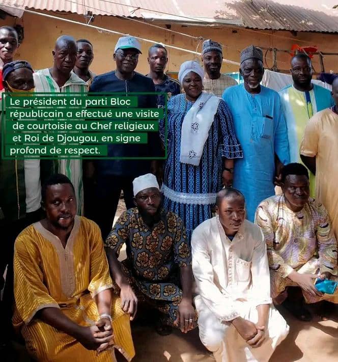 En marge de la tournée de vulgarisation des réformes constitutionnelles, le Président du Bloc Républicain Officiel a rendu une visite de courtoisie aux leaders religieux et traditionnels de la ville de Djougou. Du palais royal au vestibule de l’imam central de Djougou en passant par les domiciles de quelques sages de la ville, Abdoulaye Bio Tchané, digne fils de Djougou a réaffirmé au Roi Kpeitoni Koda VI et à l’Imam Abdoul Razack Samari, la place essentielle qu’occupent les leaders religieux et traditionnels dans la préservation de la cohésion sociale. Il a salué le rôle majeur qu’ils jouent et l’impact significatif de leur contribution à la stabilité du pays.