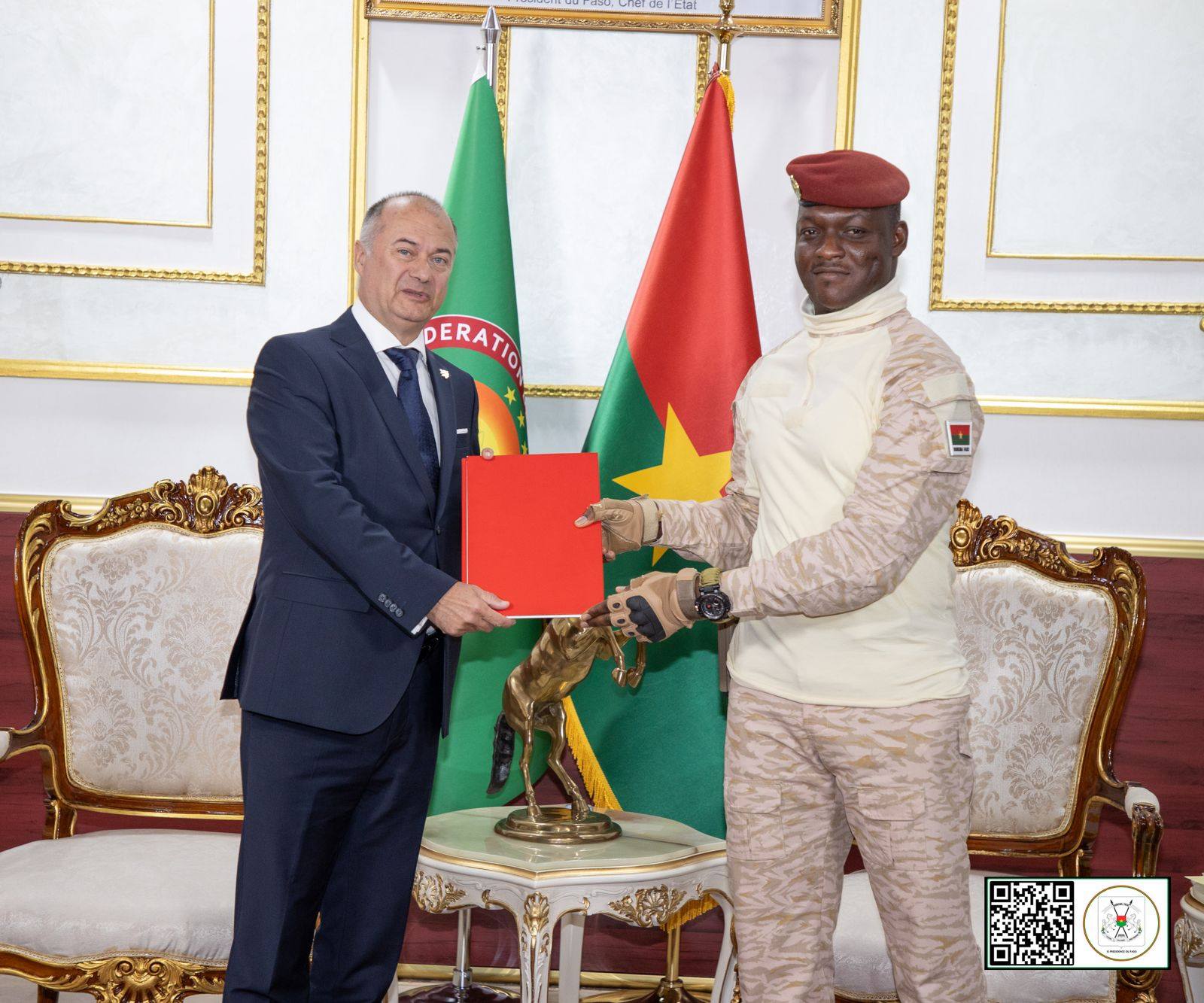 Le Président du Faso, Capitaine Ibrahim TRAORÉ, a reçu ce vendredi 5 décembre 2025 les lettres de créance de Son Excellence Pavel BILEK, Ambassadeur extraordinaire et plénipotentiaire de la République tchèque auprès du Burkina Faso, avec résidence à Accra, au Ghana.