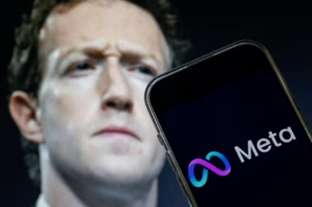 | Une photo de Mark Zuckerberg, Pdg de Meta, et le logo de Meta, le 7 janvier 2025 à Washington. |