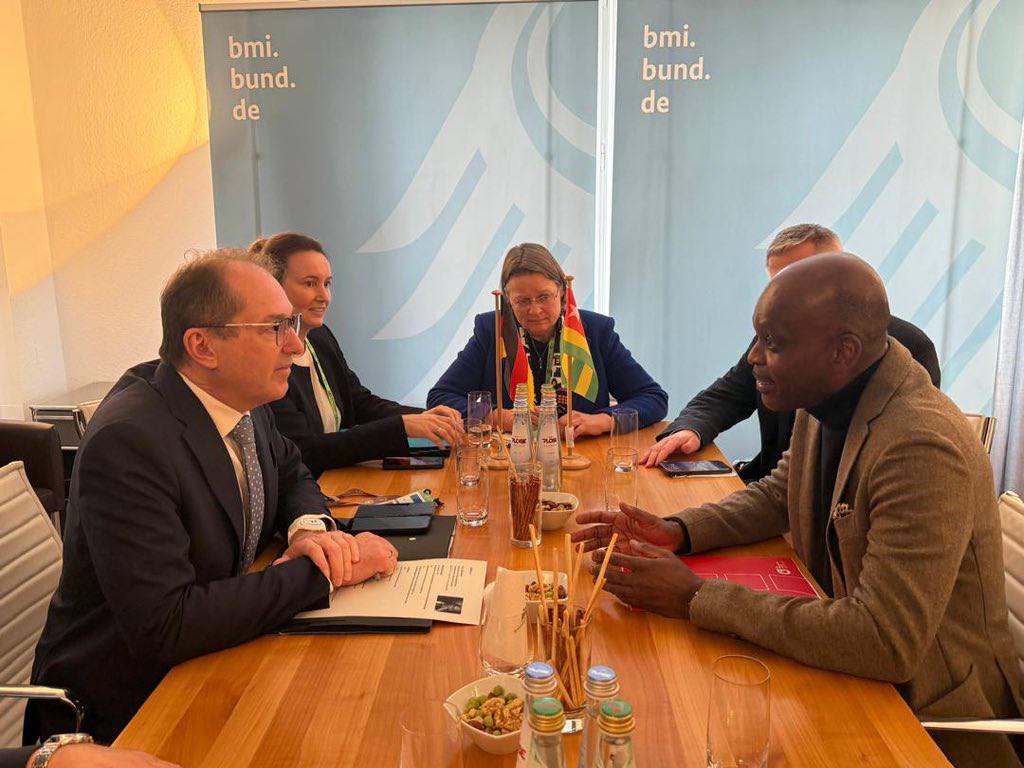À l’occasion de la Conférence de sécurité de Munich 2026, Son Excellence le Professeur Robert DUSSEY, Ministre des Affaires étrangères, de la Coopération, de l’Intégration africaine et des Togolais de l’étranger, a échangé avec Alexander Dobrindt, Ministre fédéral de l’Intérieur de l’Allemagne.
