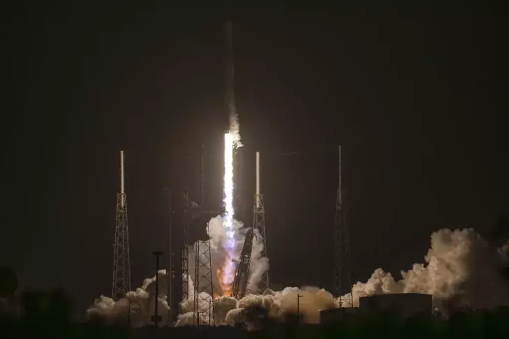 | Une fusée Falcon 9 de SpaceX, transportant le vaisseau spatial Dragon décolle du complexe de lancement spatial 40 pour la mission Crew-12 à la base spatiale de Cap Canaveral, le 13 février en Floride. |