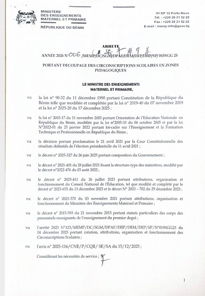 Le Bénin compte désormais 118 circonscriptions scolaires réparties en 344 zones pédagogiques, dans le cadre de l’organisation et de la gestion du système éducatif national. Le MEMP l’a fait savoir à travers un communiqué parvenu à KAWERU.