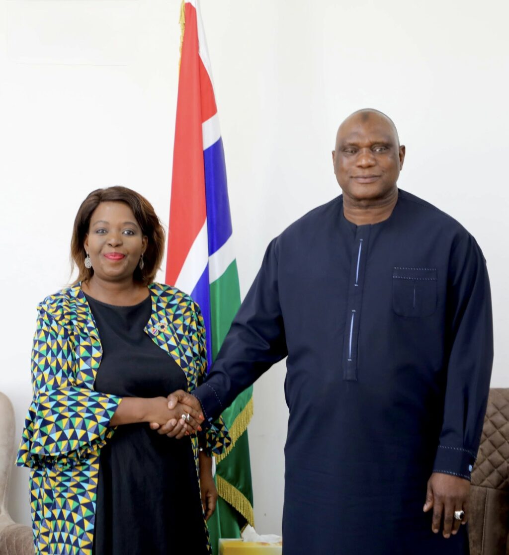 L’honorable Sering Modou Njie a reçu en audience la représentante résidente du Programme des Nations Unies pour le Développement, Mme Mandisa Mashologu, pour un appel de courtoisie dans les locaux du Ministère.