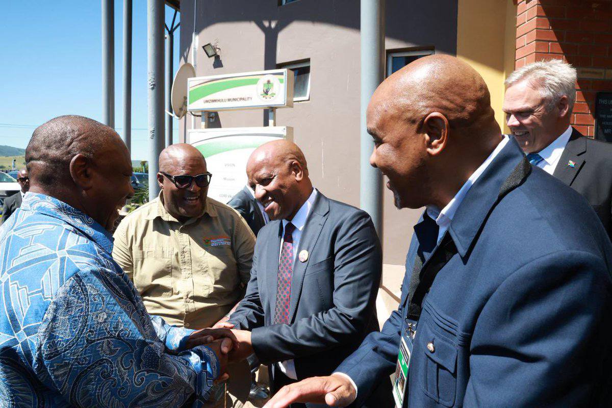 Le Président sud-africain Cyril Ramaphosa a été accueilli par le ministre de la Réforme agraire et du Développement rural, Mzwanele Nyhontso, le Premier ministre du KwaZulu-Natal, Thami Ntuli, et la maire de la municipalité locale d’Umzimkhulu, Jabulile Msiya.