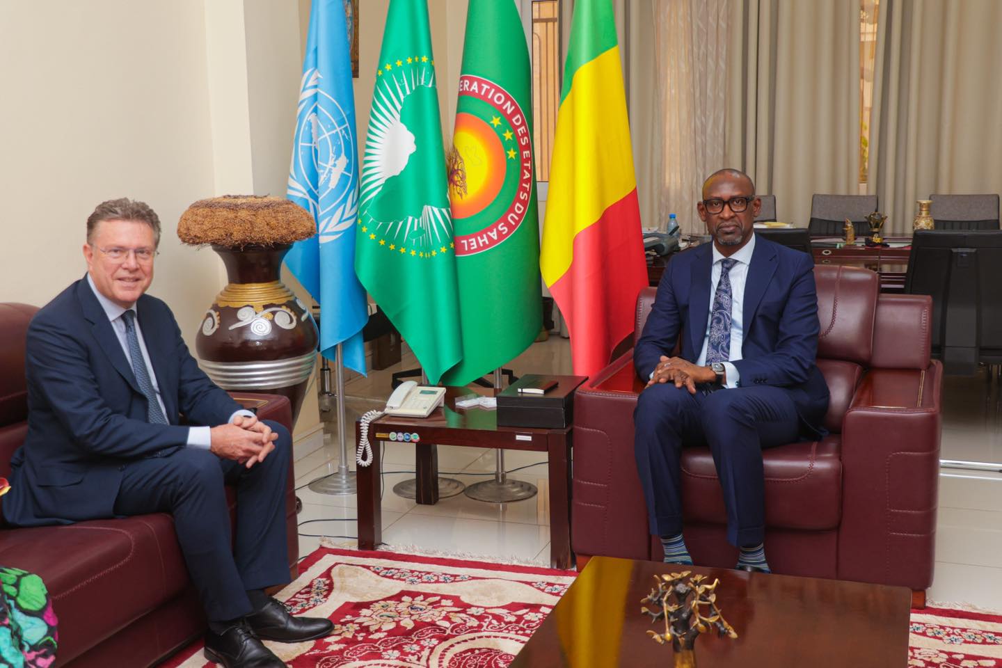 Le Ministre des Affaires étrangères et de la Coopération internationale du Mali, Abdoulaye Diop, a reçu, lundi 23 mars 2026 Herbert Scheibner, Émissaire spécial de la République d’Autriche, en visite de travail et d’amitié, en présence de Ursula Fahringer, Ambassadeur d’Autriche au Mali avec résidence à Dakar.