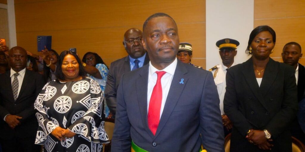 Le maire de Libreville, Pierre Matthieu Obame Etoughe, dément les rumeurs faisant état de sa démission. L’information circule sur les réseaux sociaux après le rejet d’un projet de budget par le conseil municipal. L’édile s’exprime le 13 avril 2025 lors de la levée des couleurs à l’hôtel de ville de Libreville.