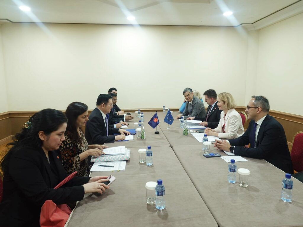 Les deux responsables ont échangé sur les moyens de renforcer davantage les relations de dialogue entre l’ASEAN et l’Union européenne. Les discussions ont notamment porté sur les perspectives de coopération en vue du 50e anniversaire du partenariat entre les deux organisations, prévu en 2027.