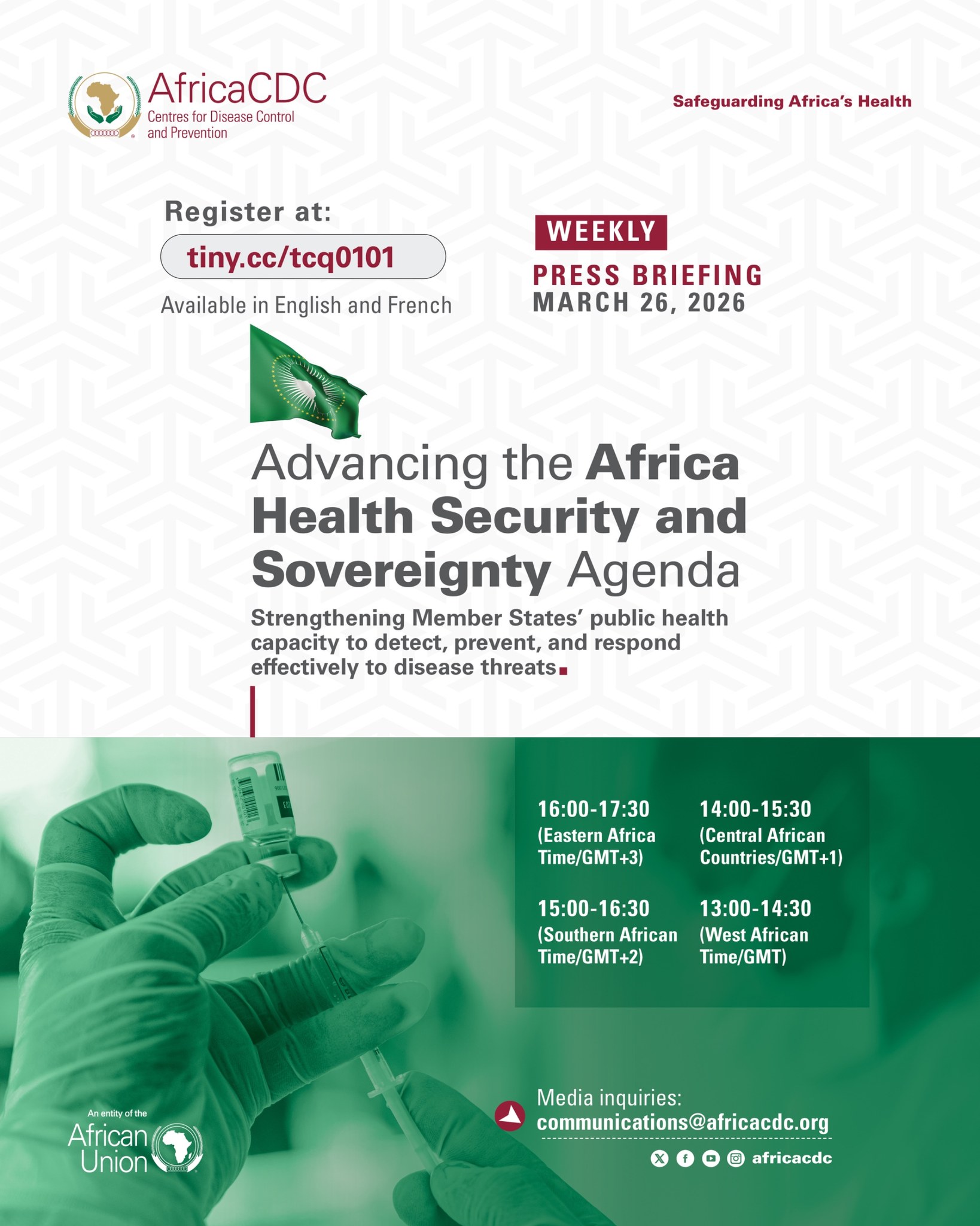 Les autorités sanitaires et acteurs concernés à travers l’Afrique sont invités à un briefing virtuel jeudi prochain, 26 mars, qui portera sur les urgences sanitaires et les priorités de réponse pour renforcer la sécurité sanitaire régionale.