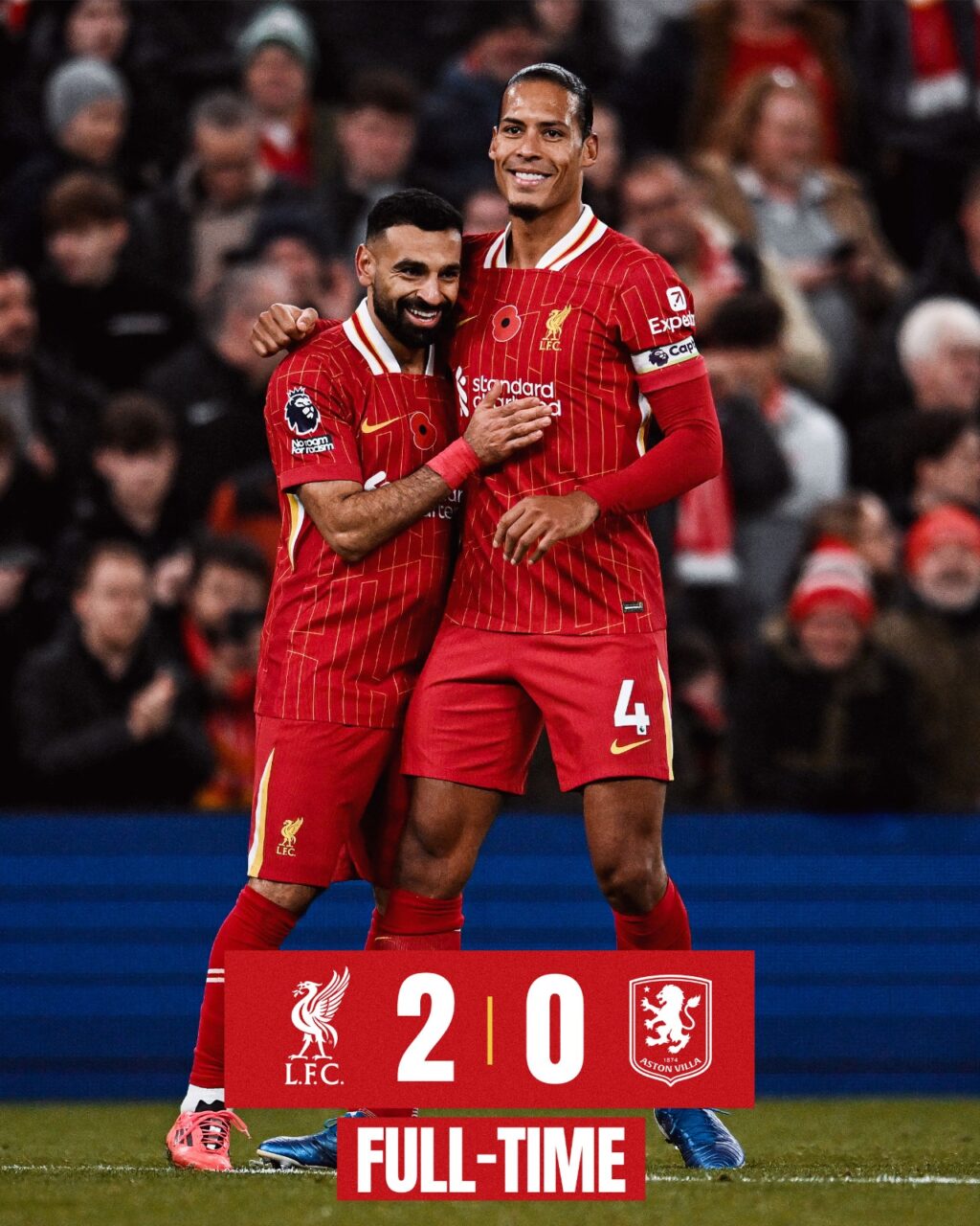Hier, 9 novembre 2024, Liverpool a continué sa marche en avant en Premier League, s’imposant 2-0 face à Aston Villa à Anfield et creusant un écart de cinq points sur Manchester City en tête du classement. Les hommes d’Arne Slot, bien que loin d’être souverains, ont fait preuve de solidité et d’efficacité, prenant un maximum de points malgré un match qui n’a pas été facile.