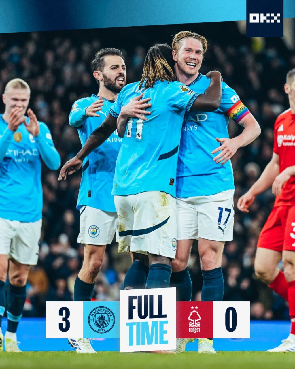 Manchester City a retrouvé le chemin de la victoire en dominant Nottingham Forest 3-0 à l’Etihad Stadium, grâce à une performance de haute volée de Kevin De Bruyne. Le Belge, absent du onze de départ lors de la défaite contre Liverpool, a été l’instigateur de toutes les actions offensives importantes de son équipe, en délivrant une passe décisive pour l’ouverture du score avant de marquer le deuxième but.