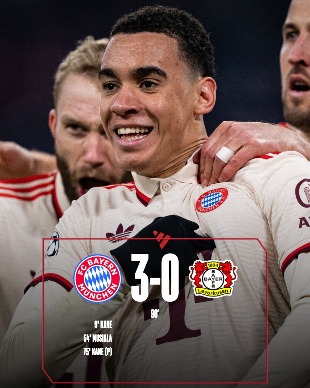 Le Bayern Munich a pris une sérieuse avance en huitième de finale aller de la Ligue des champions en battant largement, hier soir, le Bayer Leverkusen (3-0) à l’Allianz Arena. Harry Kane, auteur d’un doublé, et Jamal Musiala ont offert une victoire nette aux Bavarois.