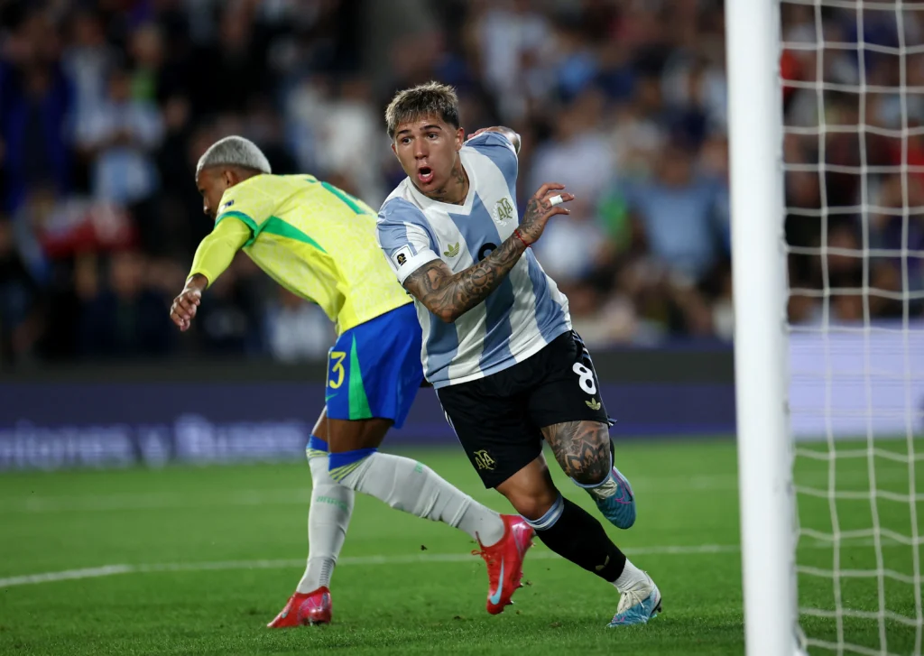 En moins de 15 minutes de match, l’Argentine a dominé et a rapidement mené le Brésil 2-0 avec des buts d’Enzo Fernandez et d’Alvarez.
