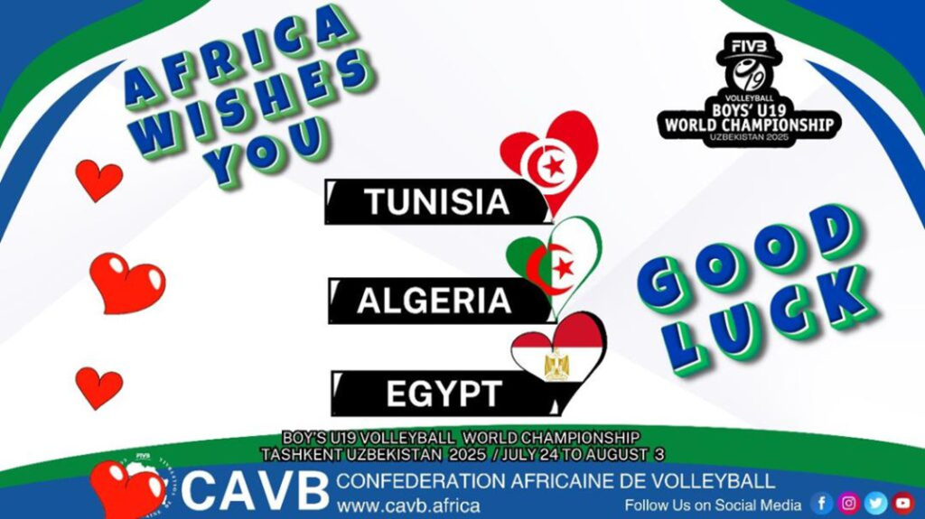 Du 24 juillet au 3 août 2025, trois nations africaines se préparent à porter haut les couleurs du continent à Tashkent, en Ouzbékistan, à l’occasion du Championnat du monde U19 masculin de volleyball. La Tunisie, l’Algérie et l’Égypte, fers de lance de la discipline en Afrique, défendront les espoirs du continent face aux meilleures équipes mondiales.