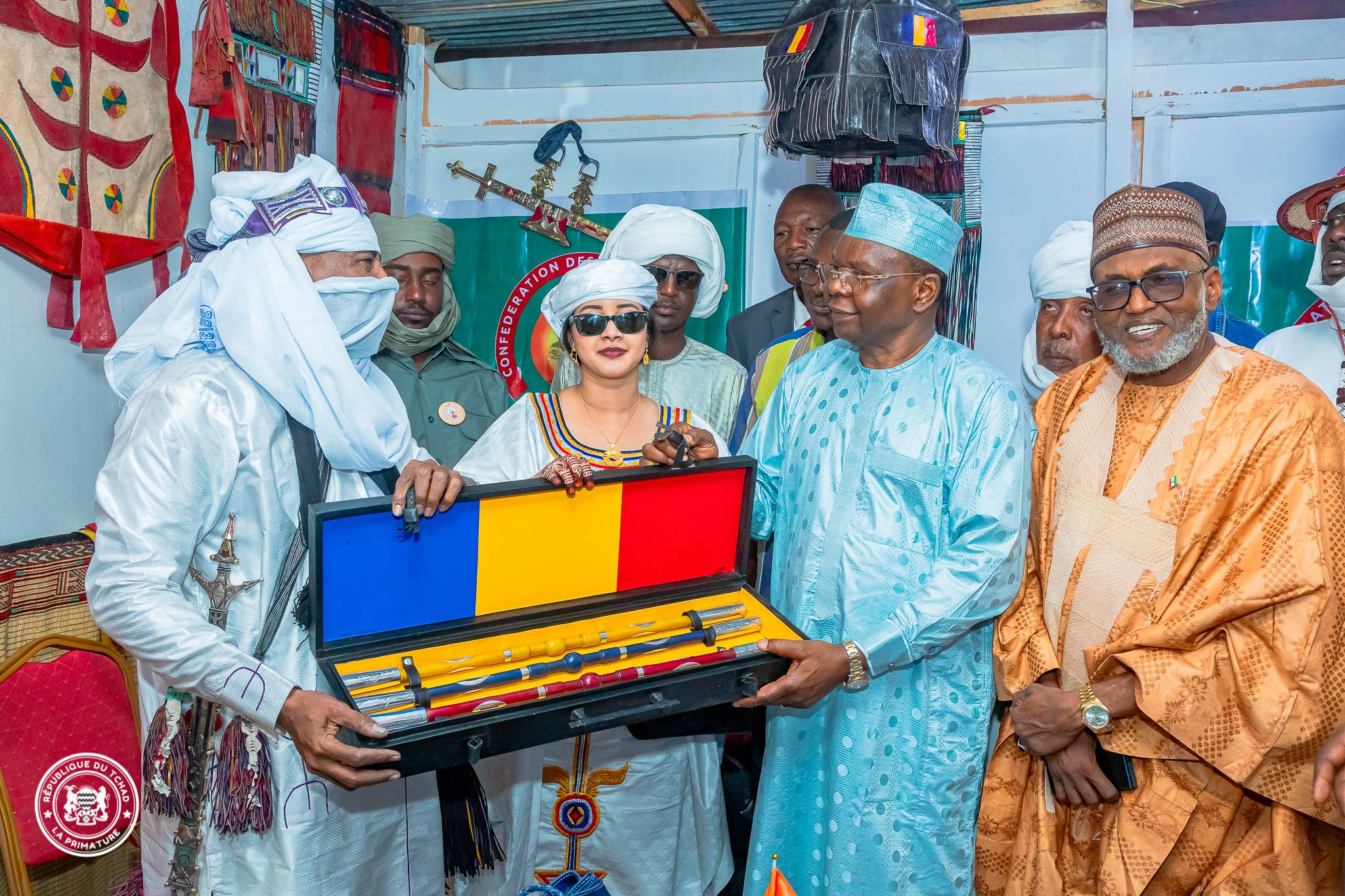 À cette occasion, plusieurs cadeaux symboliques lui ont été remis par les délégations participantes : un sabre d’apparat du Niger, un couvre-chef traditionnel burkinabè et un tapis mauritanien portant le nom du Président de la République, Maréchal Mahamat Idriss Deby Itno, illustrant l’esprit de fraternité et de partage qui anime le festival.