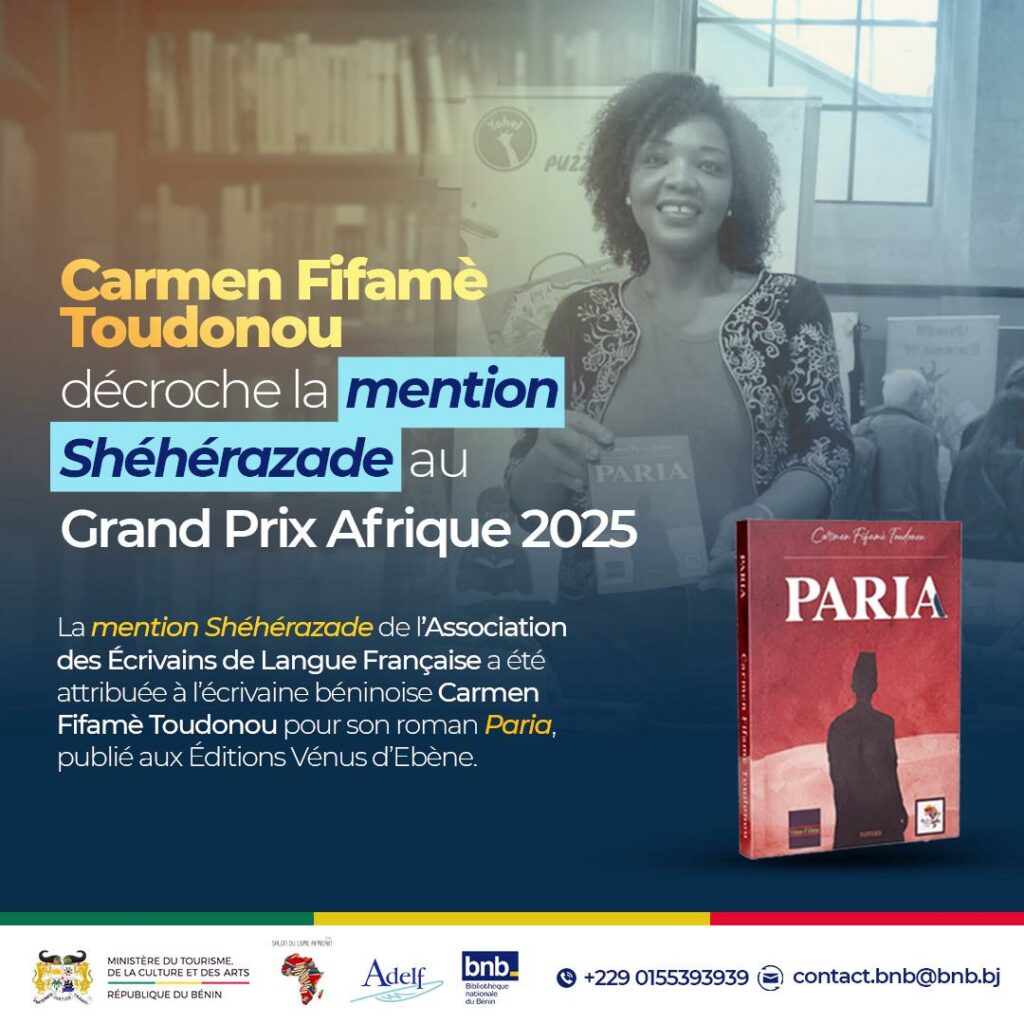 Avec la mention Shéhérazade du Grand Prix Afrique 2025, Carmen Fifamè Toudonou incarne une voix béninoise, libre et engagée, que le continent célèbre et honore.